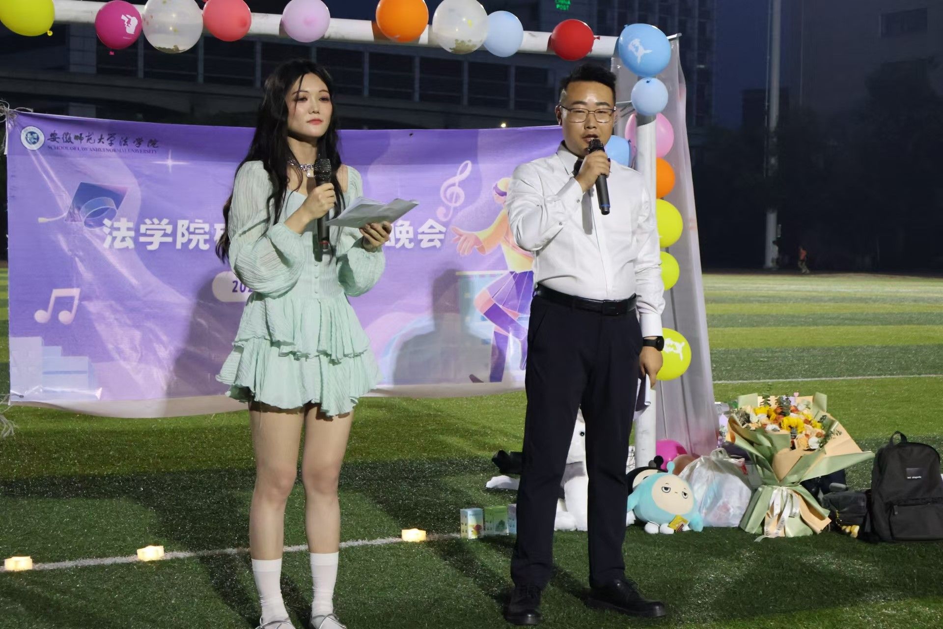 时光荏苒,青春如歌。2024年5月23日晚上7:30,yl23455永利官网研究生毕业晚会在赭山校区东操场草坪隆重举行。晚会现场被鲜花和气球装扮一新,上百名师生相聚一起,处处洋溢着欢声笑语。