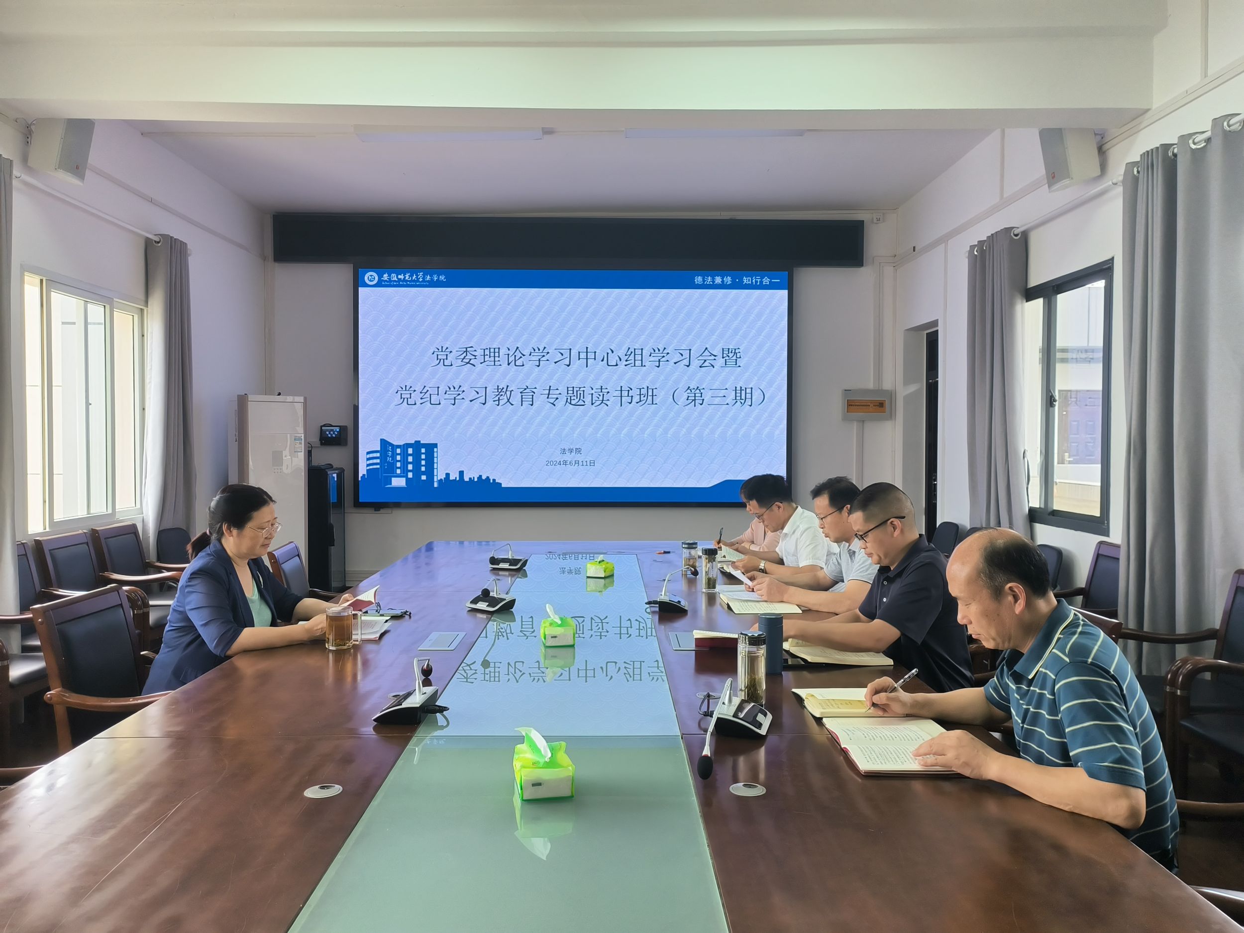 为深入学习贯彻习近平总书记关于加强党的纪律教育的重要论述,推动党纪学习教育入脑入心走深走实,6月11日下午,yl23455永利官网于行政楼515会议室召开党委理论学习中心组学习会暨党纪学习教育专题读书班(第三期)。会议由院党委书记赵红主持,院党委委员参加会议。