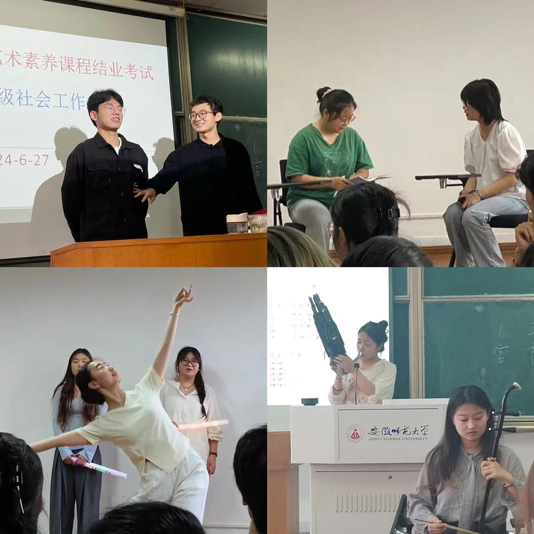 本次汇报演出不仅是《社会工作者艺术素养》课程期末考核,更为同学们提供了一次成长和展示自我风采的机会。它充分展示了社会工作专业学子们的多元才华和巨大潜力,让每一位参与者都能够在舞台上闪耀自己的光芒。未来,该课程将继续致力于培养具备全面素养的社工人才,注重艺术与社会工作的融合,以创新的教学方法和丰富的实践活动,不断提升学生的综合素质和实践能力。