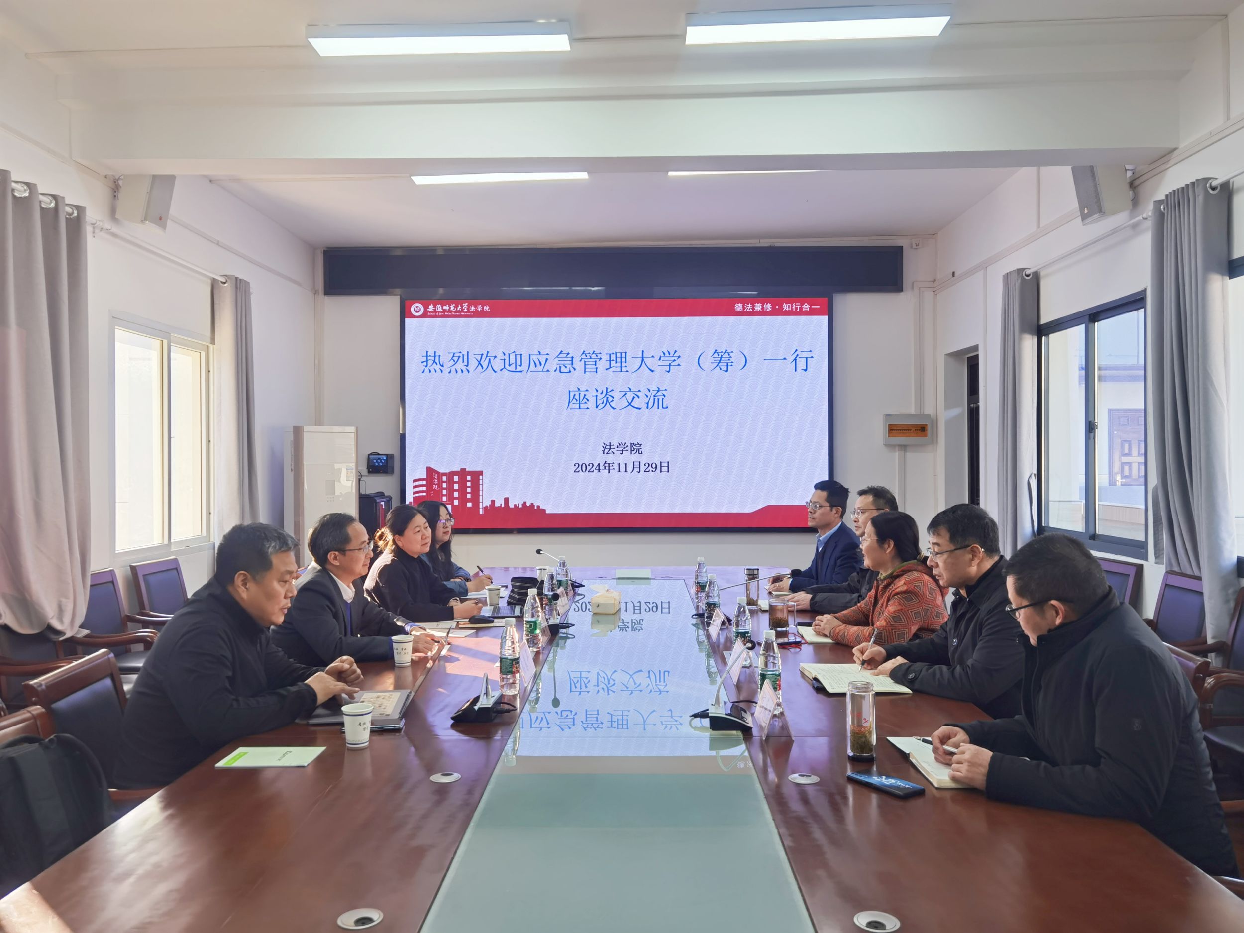 11月29日,yl23455永利官网与应急管理大学(筹)一行于yl23455永利官网行政楼515会议室开展座谈交流。会议由院党委书记赵红主持,应急管理大学(筹)联合党委常委何本华教授、文yl23455永利官网副书记卢芳华教授、应急与国家安全法治战略研究中心副主任侯春平教授、应急与国家安全法治战略研究中心办公室主任崔倩倩以及yl23455永利官网领导班子成员参加会议。