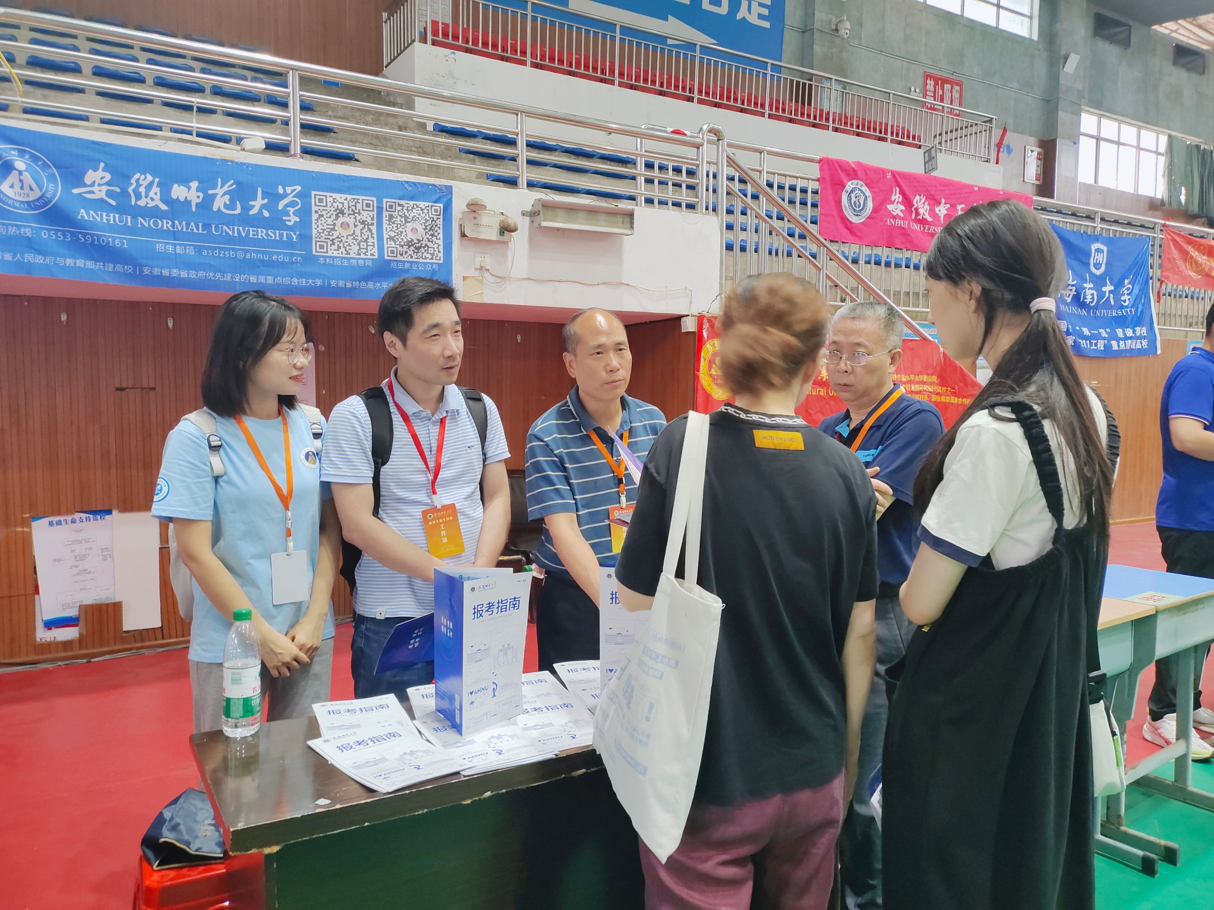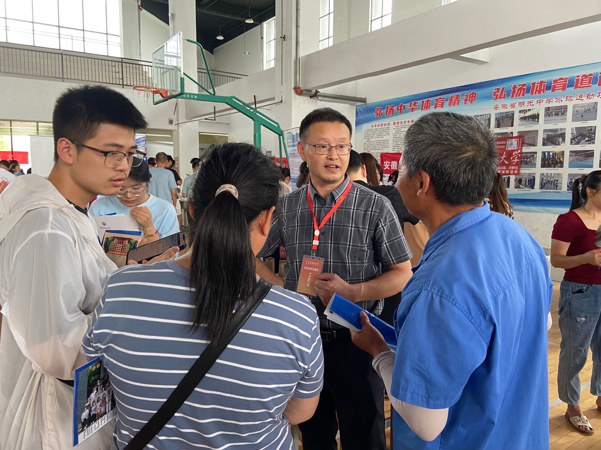 6月26-27日,yl23455永利官网分三组赴安徽多地优质生源基地开展2024年本科招生宣传。第一组由行政副院长徐成文带队,教师代表冀睿和朱启友、辅导员赵悦陪同前往繁昌一中、凤阳中学;第二组由学院党委副书记张玉新带队,教师代表刘立明、辅导员刘沐景陪同前往明光中学;第三组由教学副院长高永周带队,教师代表张素凤和翟志文陪同前往金寨一中。在招生宣传现场,学院教师开展点对点、面对面、手把手的招生咨询与服务,深受广大考生和家长欢迎与称赞。