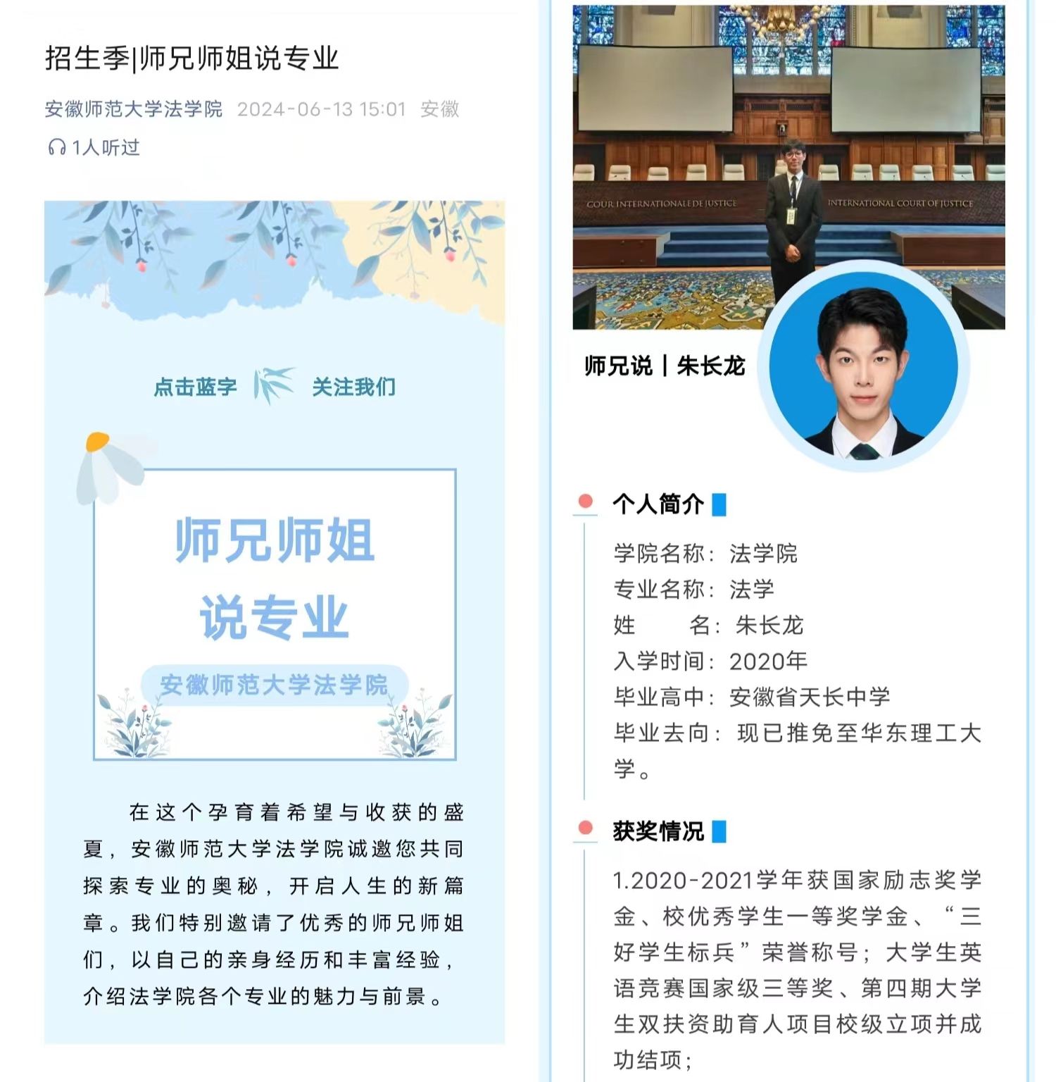 学院通过线上线下相结合,发挥新媒体宣传作用,利用学院官网和招生热线有针对性地介绍本学院的本科专业、师资队伍、人才培养和发展前景,及时更新“2024届毕业生考研录取信息榜”情况,吸引优秀生源报考我院。学院微信公众号发布2024年“招生季|师兄师姐说专业”推文,邀请了近两年来优秀的毕业学子,以自己的亲身经历和丰富经验,介绍yl23455永利官网各个专业的魅力与前景。