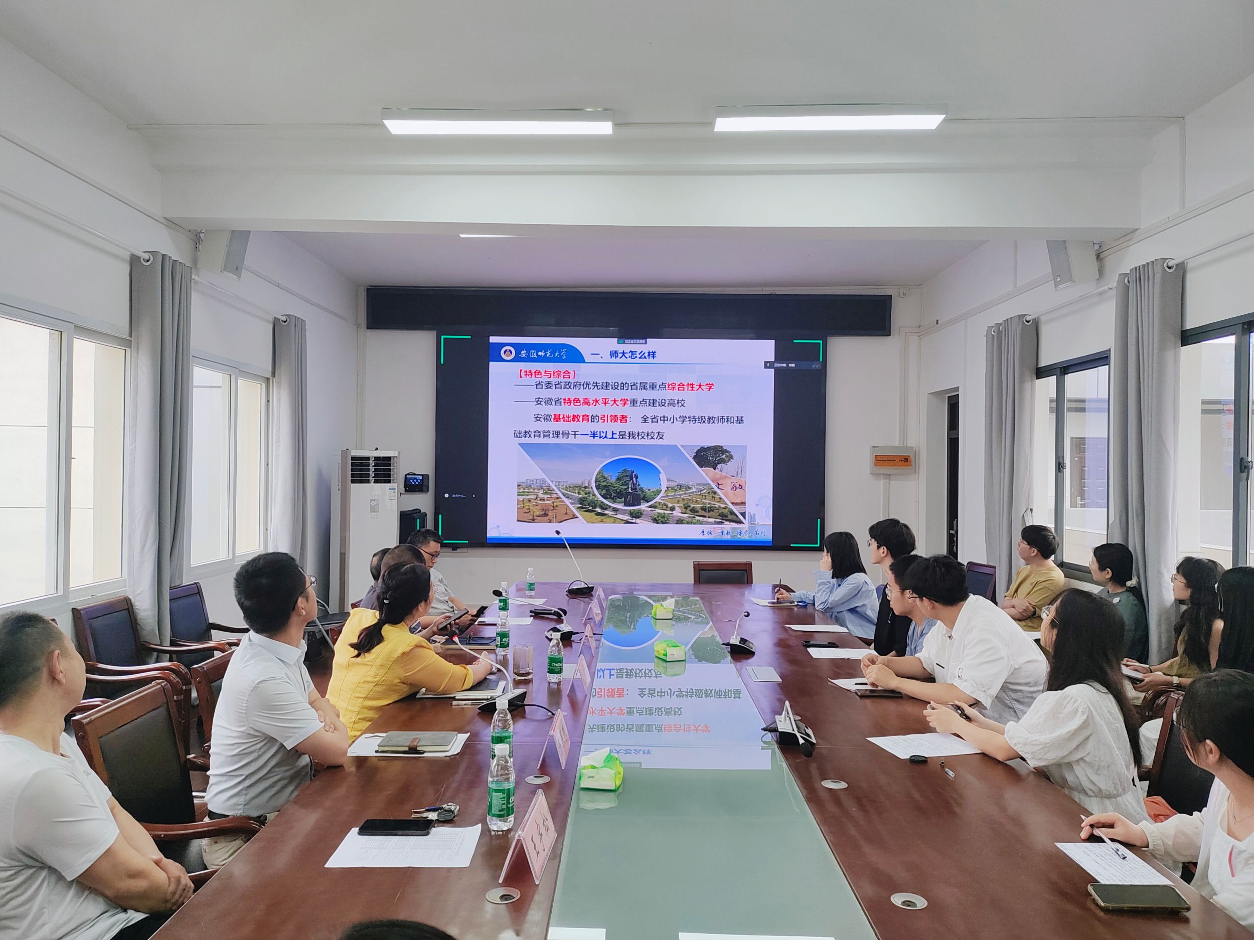 6月25日下午,学院针对招生宣传队伍召开2024年本科招生宣传工作培训会。会上,院党委书记赵红详细介绍了校史院情、招生专业和计划批次、投档原则和录取原则,她着重强调了今年本科招生宣传工作的重要性和特殊性,并重点介绍了安徽省2024年普通本科招生政策以及我校招生政策优势和亮点,要求全体招生工作人员讲好师大故事,传播师大声音,做好充分准备,悉心为优质生源地的学生和家长答疑解惑,吸引更多优质生源。