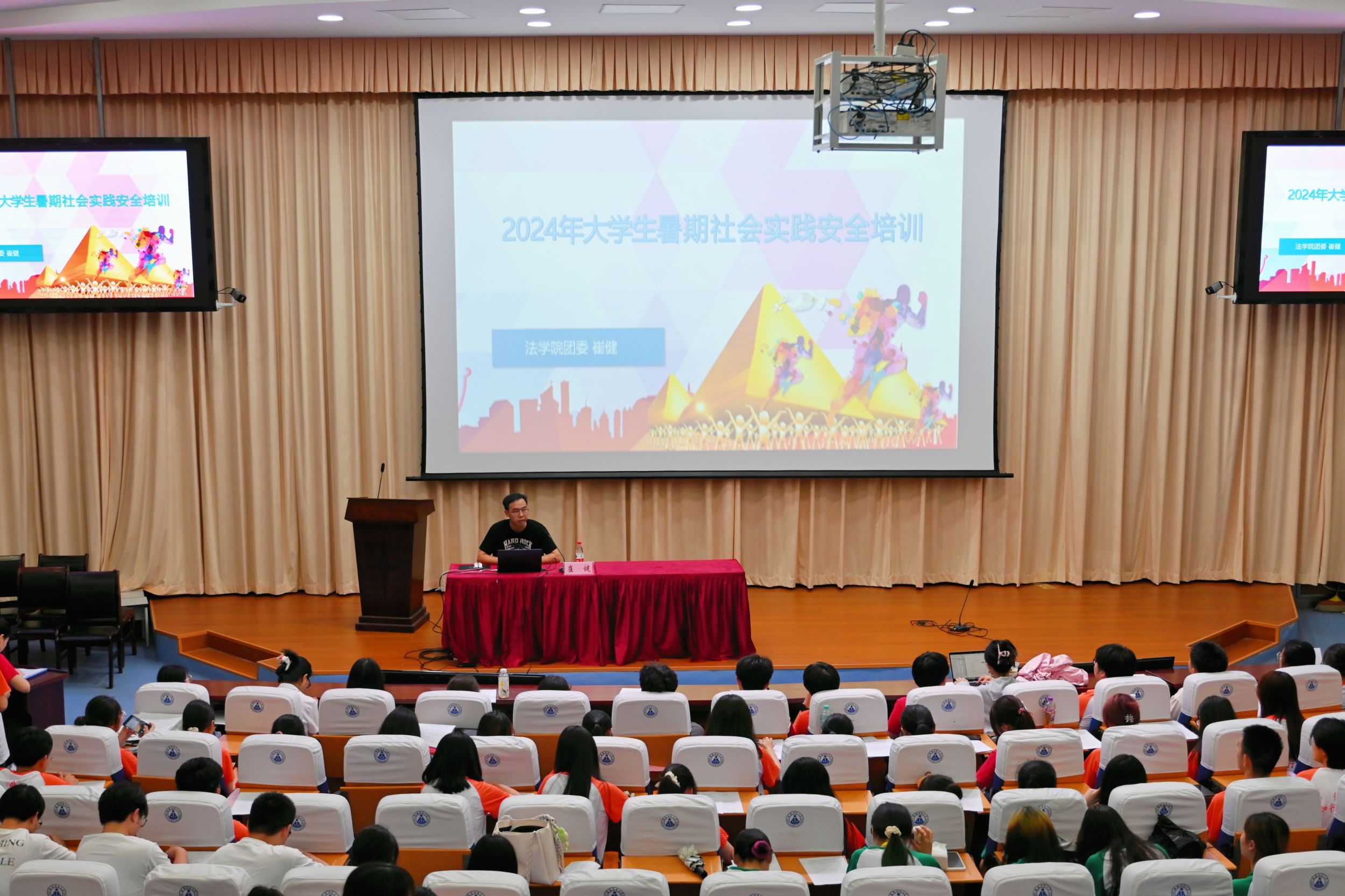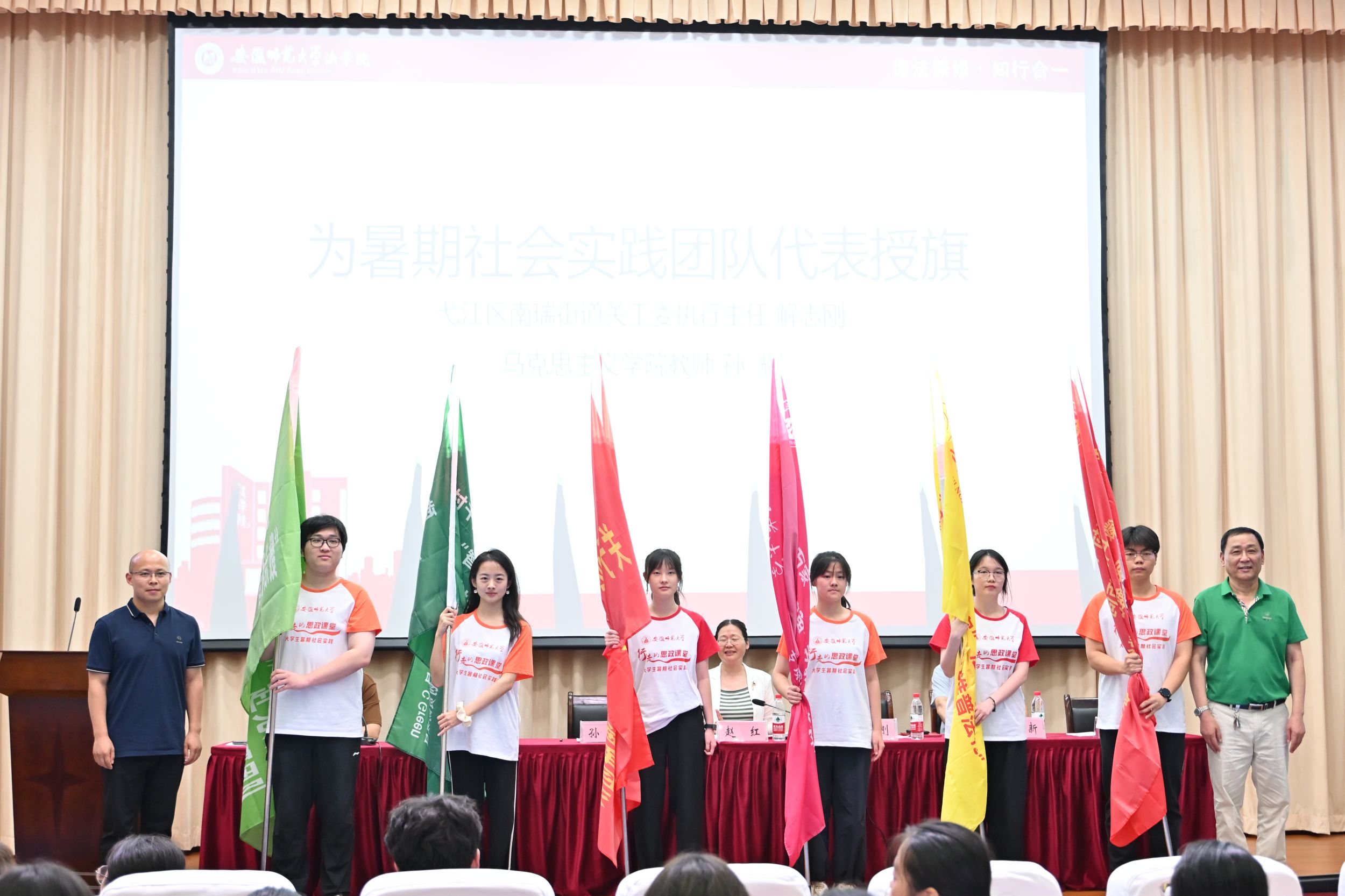 7月7日下午,yl23455永利官网于赭山校区教学法庭举行2024年暑期社会实践出征仪式暨社会实践宣传、安全工作培训。yl23455永利官网党委书记赵红、党委副书记张玉新、弋江区南瑞街道关工委执行主任解志刚、马克思主义学院教师孙辉、法学系主任陆在春等参加出征仪式。仪式由学院团委书记蔡志鹏主持。
