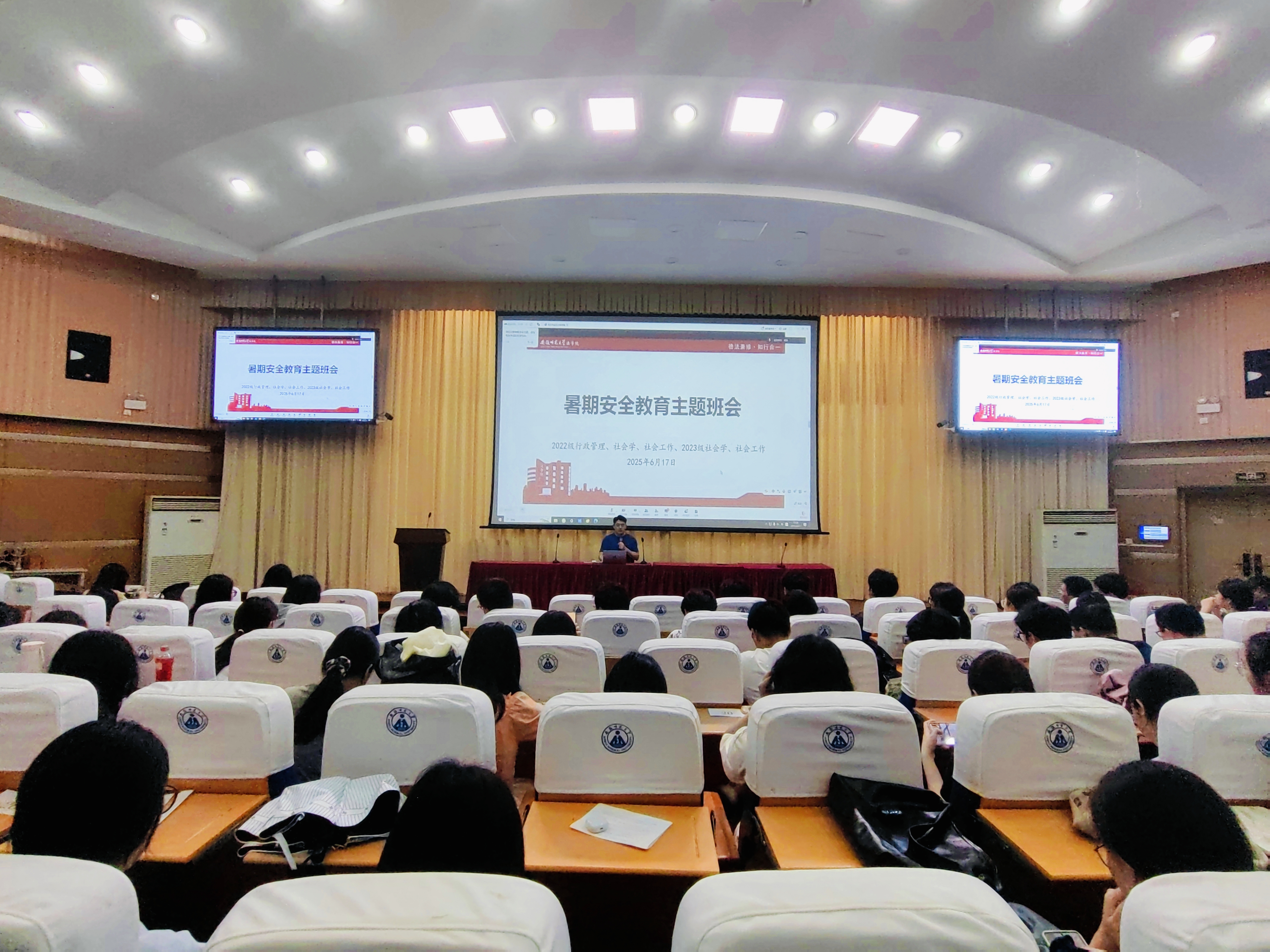 为深入贯彻落实大学生护航行动计划,切实筑牢暑期校园安全屏障,6月17日下午,yl23455永利官网2022级行政管理专业及2022、2023级社会学、社会工作专业在模拟法庭召开暑期留校安全教育主题班会。会议由刘沐景主持,全体学生参与。