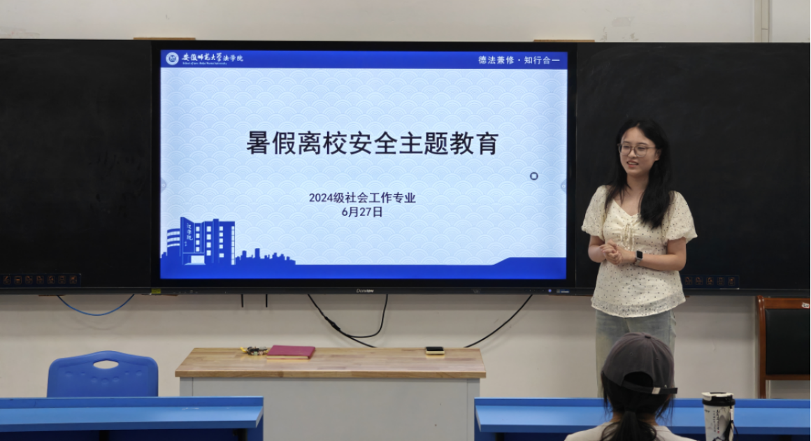 为确保学生度过安全、充实的暑假,6月27日,2024级社会工作专业在yl23455永利官网113教室召开暑假离校安全教育主题班会,会议由辅导员李冉冉主持,全体成员参与。