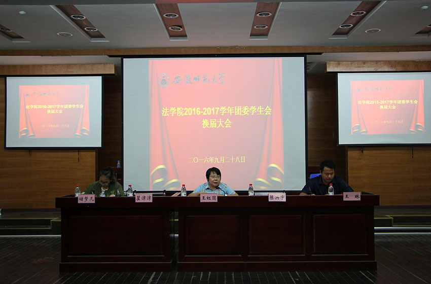 9月28日下午,yl23455永利官网在模拟法庭召开2016-2017学年团委学生会换届大会。院团委书记王虹圆、2014级辅导员王琳和2016级辅导员储梦凡受邀出席了此次活动。