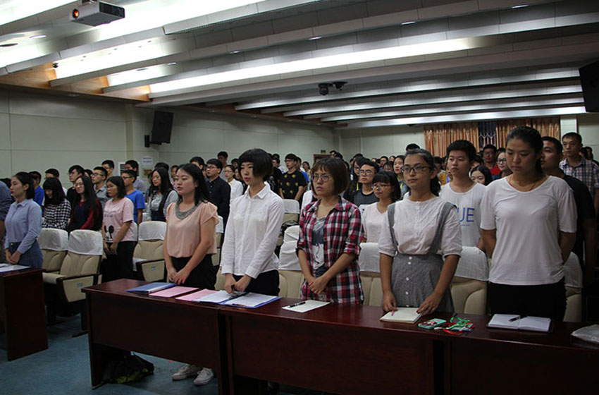 大会伊始,王琳向大家宣读了2016-2017学年团学系统学生干部名单。上届学生会副主席姚莉上台与大家分享了工作经验,新任团委学生副书记左丽丽和学生会主席马丹宁也作为新一届学生干部的代表分别上台讲话,充分表达了努力服务于同学的决心。