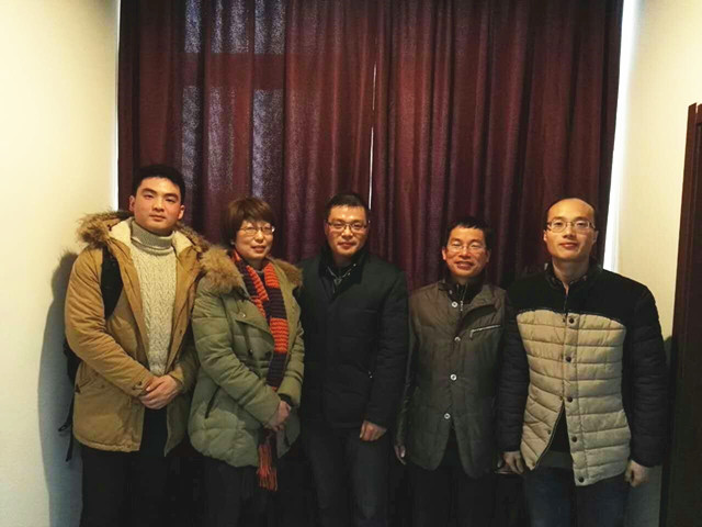 1月25日,我院2014届法学专业优秀毕业生储昭鑫、陈健利用假期时间回到母校“探亲”,院党委书记马广见、副书记屈光峰、辅导员雍自元老师与他们亲切交谈。